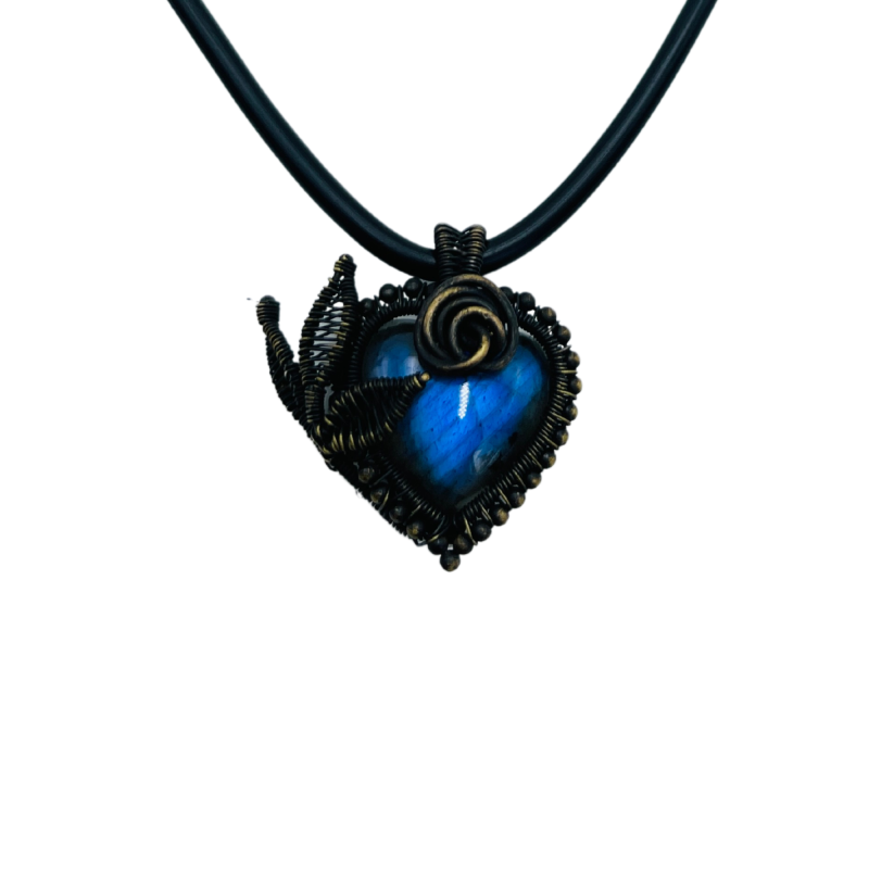 Each APHRODITE'S HEART pendant is as unique as the labradorite at its center, ensuring that your piece is truly one-of-a-kind. The combination of the vintage copper work and the shimmering labradorite creates a harmonious blend of old-world romance and natural wonder, resulting in a wearable piece of art that transcends time.