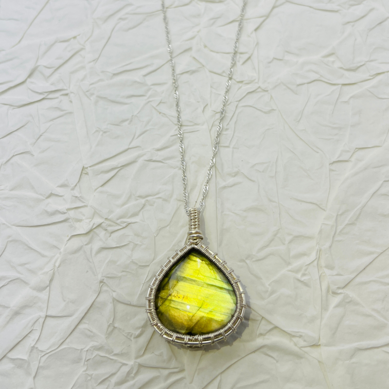 Each COSMIC LOVE pendant is as unique as the labradorite at its center, ensuring that your piece is truly one-of-a-kind. The interplay between the copper wirework and the shimmering labradorite creates a harmonious blend of terrestrial and celestial elements, resulting in a wearable piece of art that seems to hold the secrets of the cosmos within its depths.