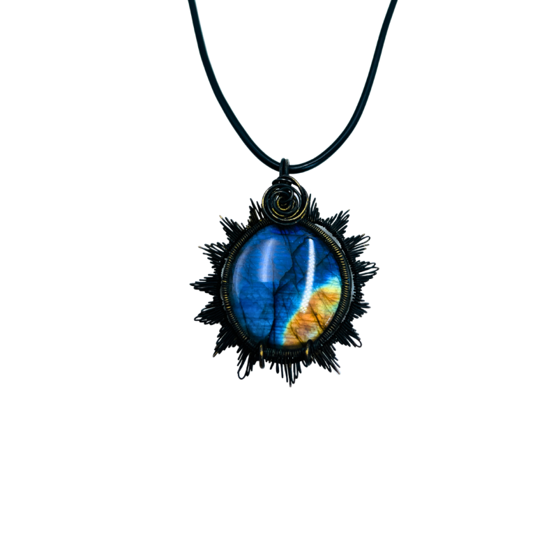 Embrace the enduring beauty of our Diamond Earth pendant, featuring a stunning natural Indian labradorite stone meticulously hand-cut and surrounded by an intricate copper wire frame with radiating triangular patterns. This 18.8-gram masterpiece showcases the stone's mesmerizing labradorescence, evoking the eternal brilliance of a diamond and the ever-changing hues of Earth. The elegant design, with its outward-spreading triangles resembling continuous waves, creates a truly captivating accessory that embodies strength and eternity. Perfect for those who appreciate the fusion of natural beauty and symbolic jewelry, this pendant represents the enduring nature of our planet and the timeless allure of precious gems. Whether worn as a statement piece or a daily reminder of Earth's resilience, Diamond Earth adds a touch of celestial elegance to any outfit.