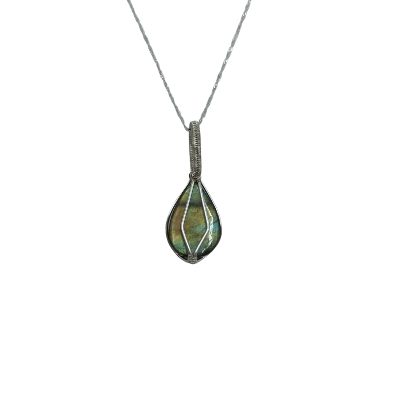 Experience the comforting embrace of celestial protection with our Guardian Angel's Tear pendant, a captivating creation that embodies the loving watchfulness of your personal guardian angel. This exquisite piece features a carefully selected natural Indian labradorite stone, renowned for its mesmerizing play of colors known as labradorescence, evoking the shimmering, ever-changing hues of a tear shed by a celestial protector.