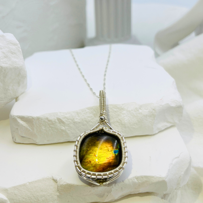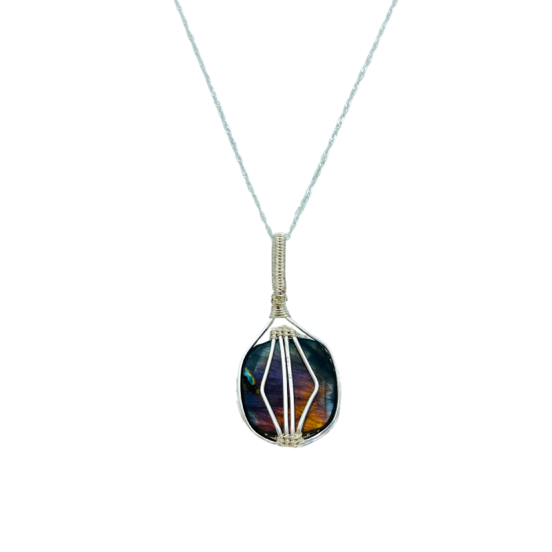 Labradorite is renowned not only for its visual appeal but also for its metaphysical properties. It's believed to be a stone of transformation and magic, enhancing intuition, boosting confidence, and helping the wearer tap into their inner wisdom. In this pendant, these properties are amplified by the sapphire-like appearance, traditionally associated with royalty and divine favor.