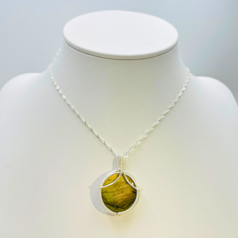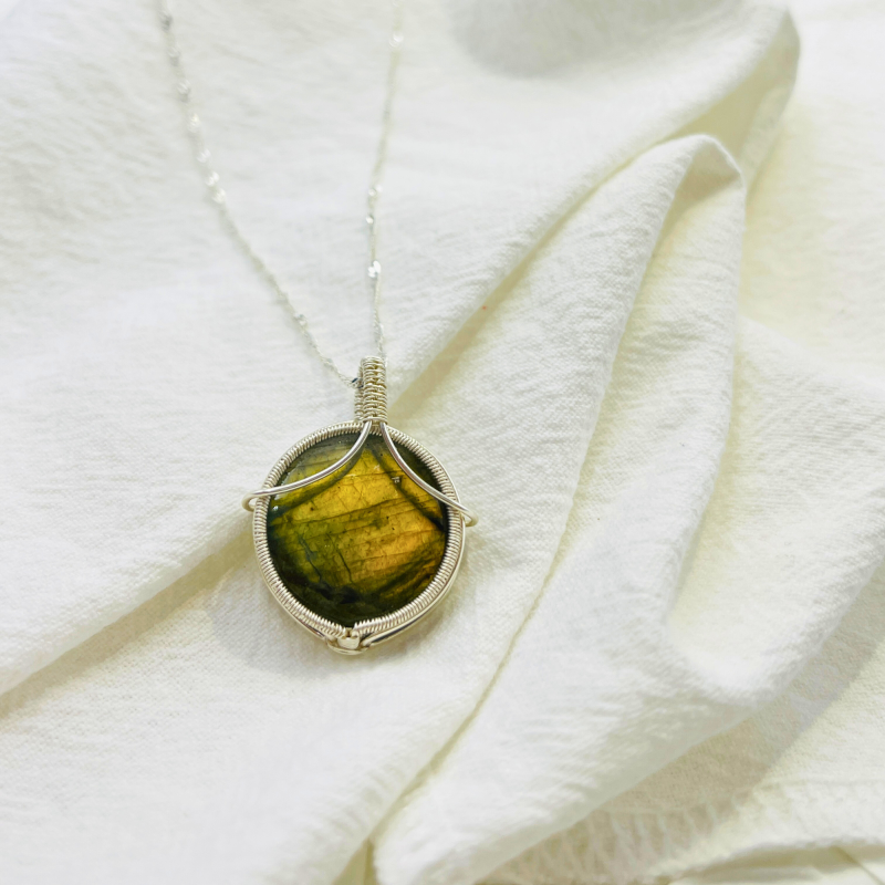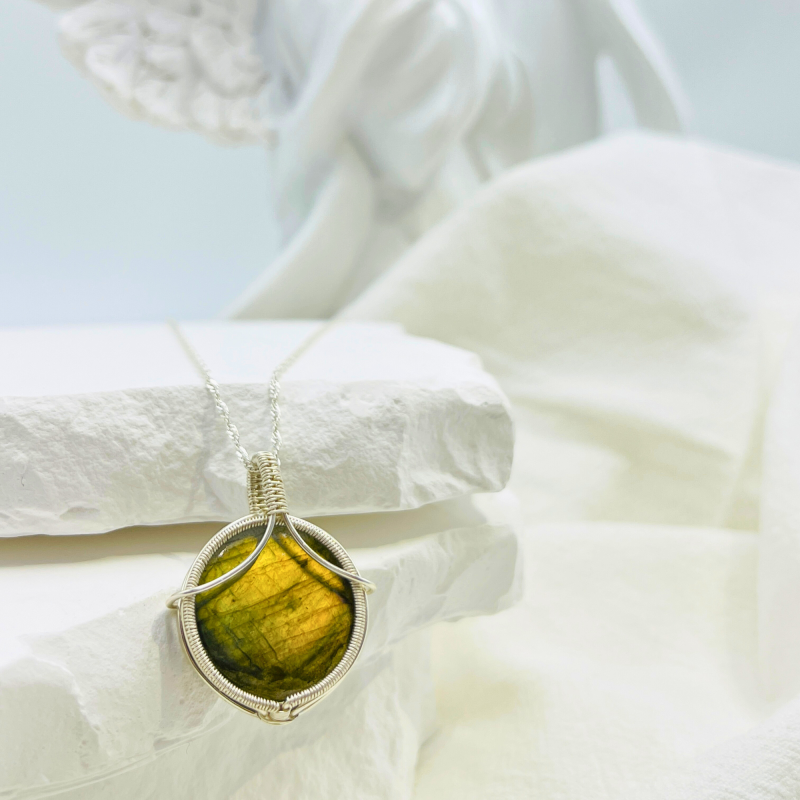 Labradorite is renowned not only for its visual appeal but also for its metaphysical properties. It's believed to be a stone of transformation and magic, enhancing intuition, boosting creativity, and helping the wearer connect with their innermost dreams and desires. Wearing this pendant is like carrying a piece of your golden dreams with you, a constant reminder of your hopes and the potential for their realization.