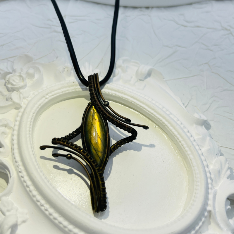 Labradorite is renowned for its mesmerizing play of colors, known as labradorescence. Under varying light conditions, this magical stone displays a captivating array of blues, greens, purples, and yellows, reminiscent of a shimmering rainbow. Each stone is unique, ensuring that your pendant is truly one-of-a-kind.