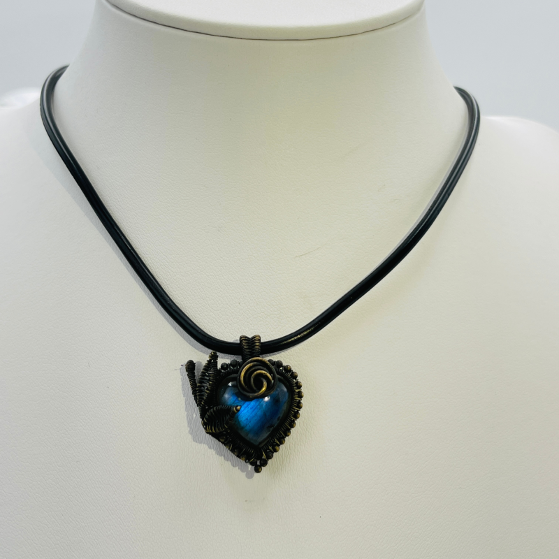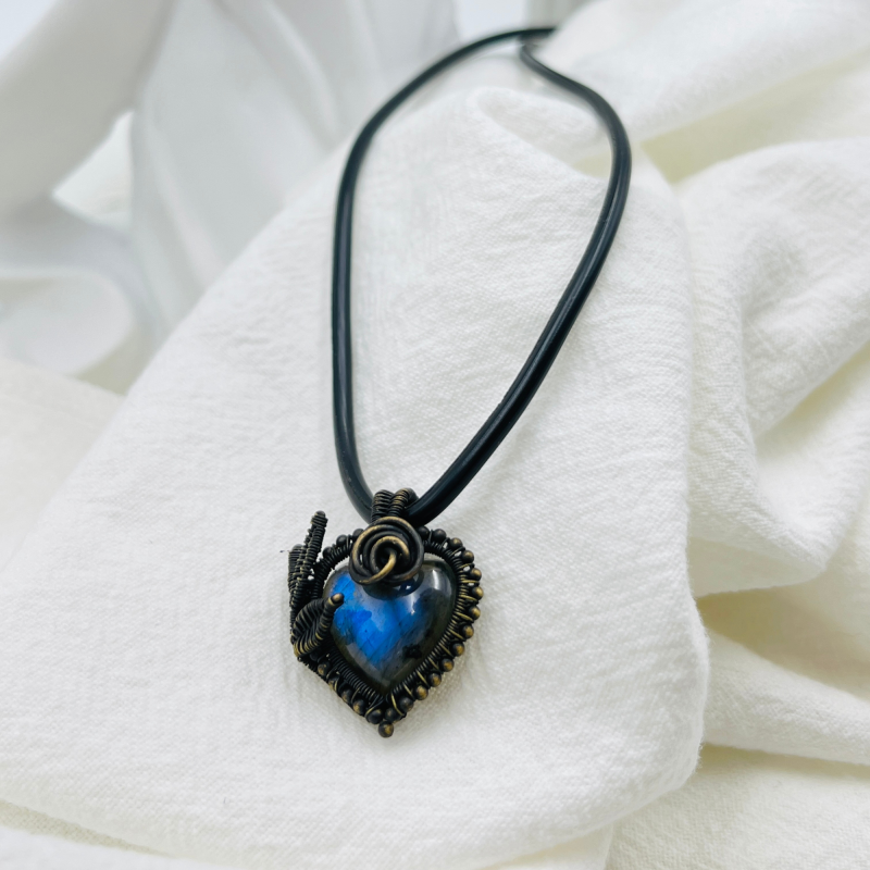 Each APHRODITE'S HEART pendant is as unique as the labradorite at its center, ensuring that your piece is truly one-of-a-kind. The combination of the vintage copper work and the shimmering labradorite creates a harmonious blend of old-world romance and natural wonder, resulting in a wearable piece of art that transcends time.