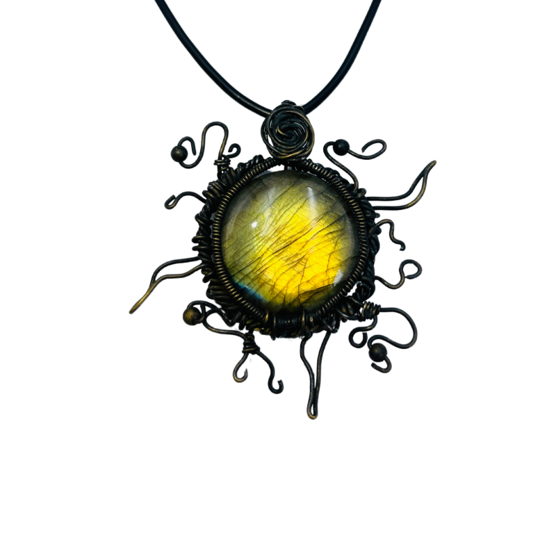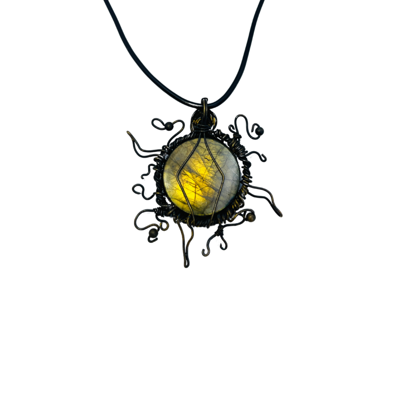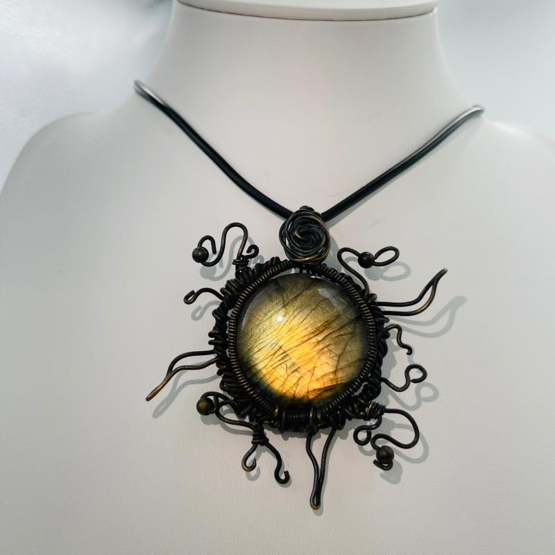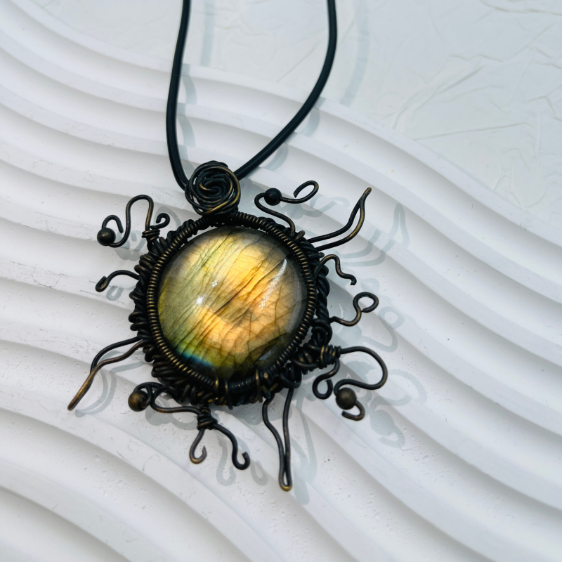 Whether you're drawn to its bold, radiant design, the mystical qualities of labradorite, or its representation of wisdom and rebirth, this necklace promises to be a striking addition to your jewelry collection. It's perfect for those who seek to embody the qualities of resilience, wisdom, and constant renewal in their lives.