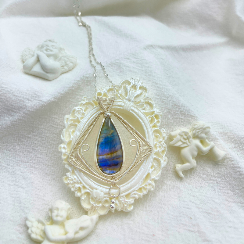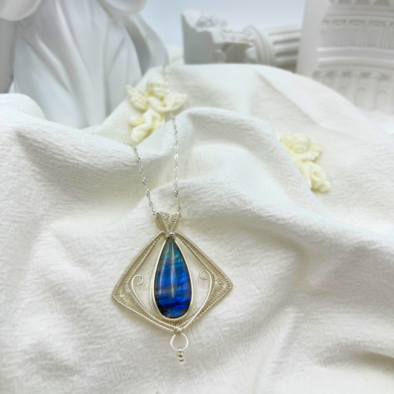Immerse yourself in the legendary beauty of a lost world with our Heart of Atlantis pendant, a captivating creation that embodies the mystical allure and timeless wisdom of the fabled sunken city. This exquisite piece features a carefully selected natural Indian labradorite stone, renowned for its mesmerizing play of colors known as labradorescence, evoking the shimmering, ever-changing hues of Atlantis's mythical waters.