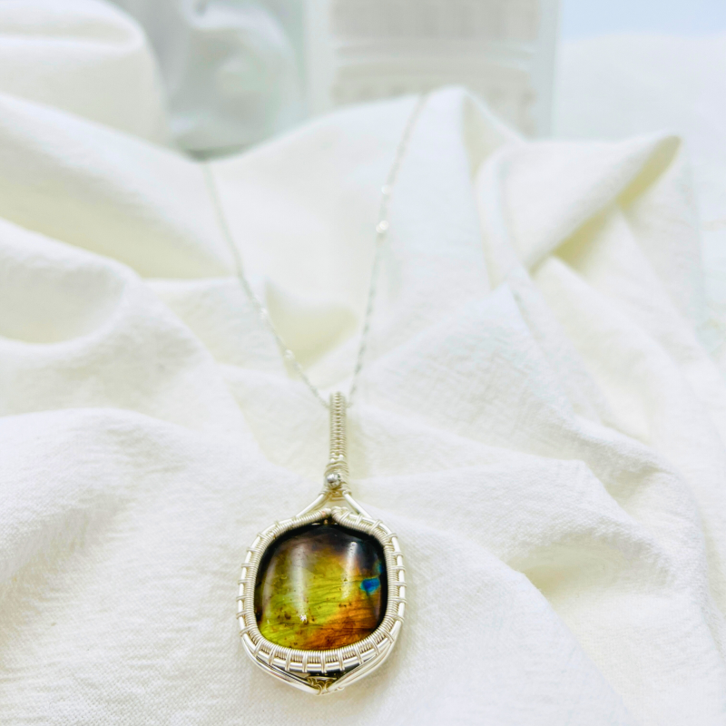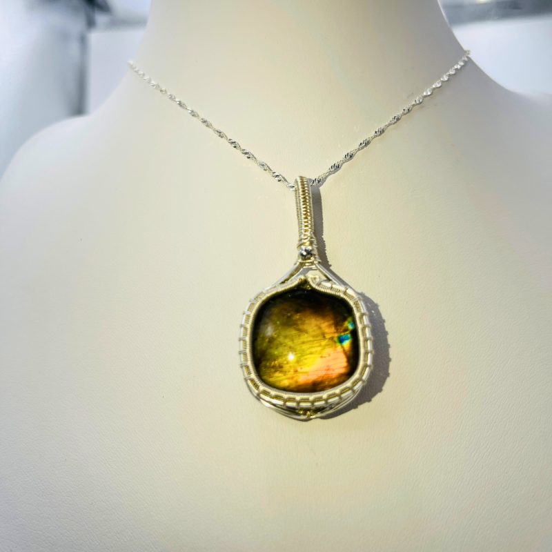 Labradorite is renowned not only for its visual appeal but also for its metaphysical properties. It's believed to be a stone of transformation and magic, enhancing intuition, boosting confidence, and helping the wearer tap into their inner wisdom. In this pendant, these properties are amplified by the sapphire-like appearance, traditionally associated with royalty and divine favor.