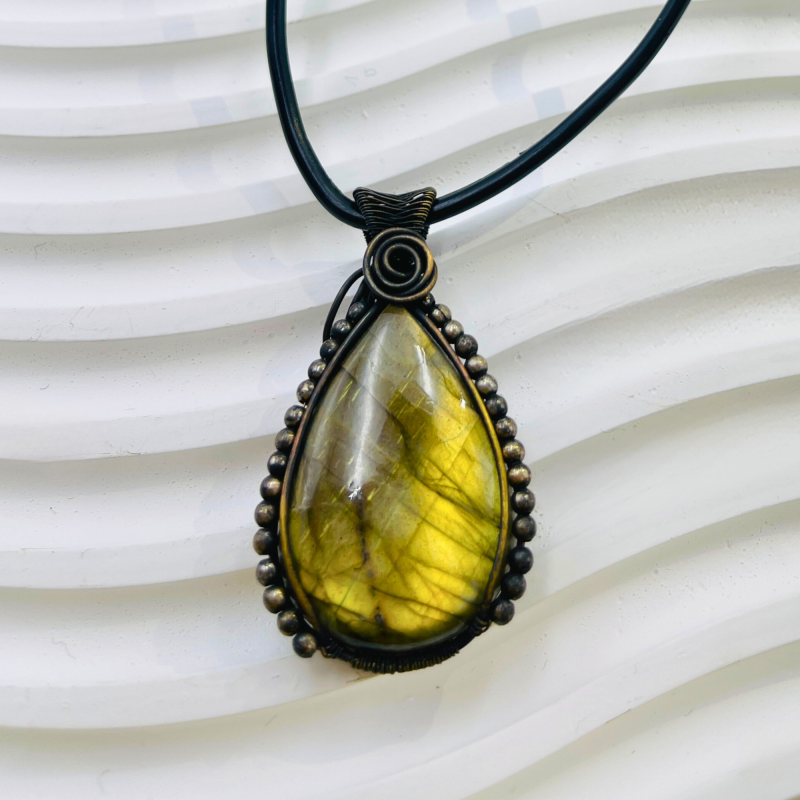 Handcrafted Copper Wire Wrapping Expertly executed wire-wrapping technique showcases artisanal skill and adds a touch of rustic elegance.